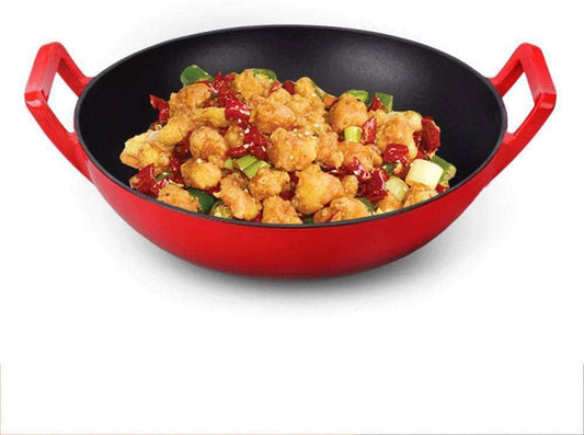 Pre-seasoned non-stick cast iron wok with handle